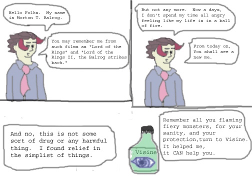 Now for the comic. I know it is a little strange. First off, it doesn't follow the set pattern of 3 panels in a row, second it is sort of in color, and third, it doesn't contain Zorro or Ester. Well, I wanted to try a little something different since I got Photoshop for Christmas, and I am still trying to learn how to work it. That is why it looks so crappy. So take this comic as a fake episode 25 if you like. the next one should be a lot better. And when I get back to school, I will promptly go back to my one a day schedule, but for now I am off to play video games.