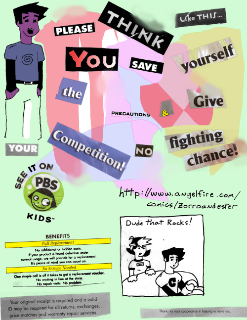 2252 - Well, first off I think I'll apologize for the comic. It is actually just a little flyer I am making for Zorro & Ester, but since I've been under the weather lately, and went home for this weekend, then came back with a Gamecube, I've been distracted and couldn't pump out the comic I wanted to. So I'm gonna make it better and give it to you wednesday, deal? Glad you can't argue with me since this is my rant, not yours.