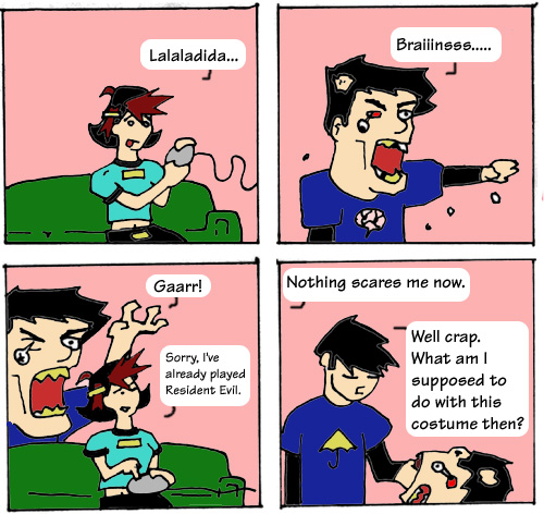 5142 - Stuff happens sometimes. As you can see, or at least assume, that the "new" Resident Evil is scary. (Say scary like Vash does to give it more UUmph. Or at least like Cusko does in Emperor's new Groove.) Scarry! Scarry tree! Ok, well, um... yes. It is scary.