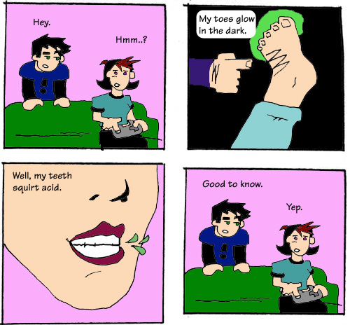 If you want some talking by me, read my reviews at I Hate This Game, cause that is where you will find talking. Here is where you find comics.