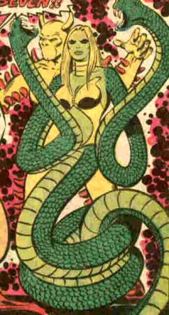 - Reptilla is a member of the Salem’s Seven, a group of super-humans who had been magically mutated by Nicholas Scratch, the son of Agatha Harkness. She normally resides in New Salem, Colorado, where the inhabitants normally practice the occult. Reptilla can magically assume an inhuman form in which the lower part of her body and arms resemble the body of a snake and in which snake heads take the place of her hands. She has the limited ability to wield magic.