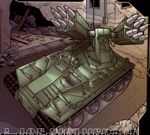 Missiles: the Wolverine's twin launchers are armed with twelve surface to surface, anti-tank or anti-personnel missiles. These missiles strike to inflict the damage indicated below, but can do increased harm when striking a target in tandem. If two missiles hit a foe, increase their damage by +1cs, and if four hit a single target, increase said damage by +2cs. The missiles have these characteristics: