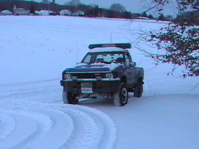 My Truck is a 1986 Toyota pickup AKA The Beast. Its not too beastly yet but I beat it and it still runs lol. I plan on fixing it up adding a lift kit and big tires and a V-8 either a 350 or a 327 worked up of course. I also want a new paint job with some custom effects. At the moment its powered by a 4 cyl engine (22RE).