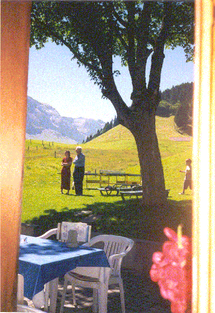 Cette photo ( ayant quelque ressemblance avec les peintures de Hopper ? ) a été prise par Lucie lors de notre réunion de famille près de Gilbach (Adelboden) à l'occasion de nos 50 ans de mariage...Avec nos amis suisses Pierre Schranz (+ 2004) et son épouse Georgette, née Vauthier, nous étions 31 !
