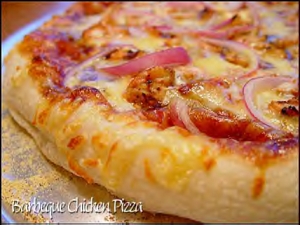 - In a small bowl, mix the remaining barbeque sauce and marinara sauce. Spread evenly over the pizza crust. Sprinkle with