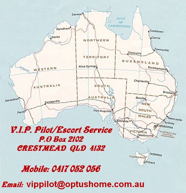 V.I.P. Pilot/Escorts Service extends Australia wide.