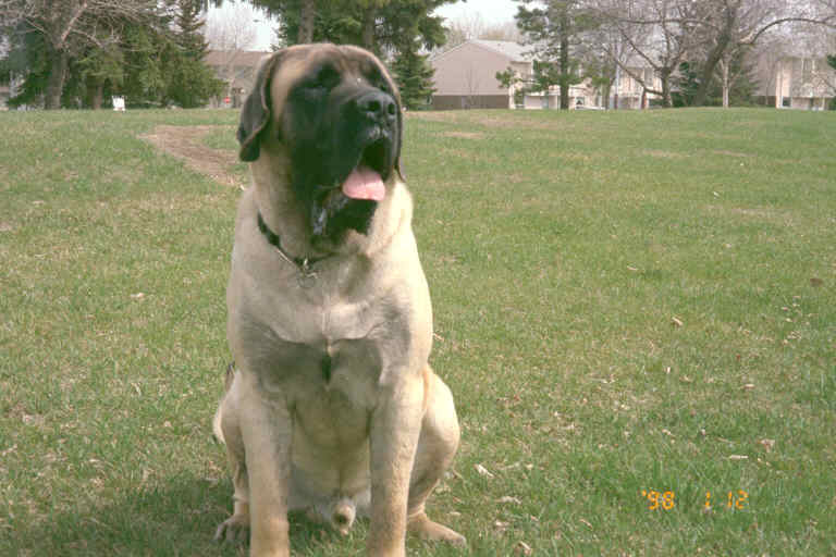 Tank. Shown here at 11 months old. He has just begun his career as a show dog and has already shown much promise, taking second in his first show in August 2000 at the Westerly Dog Show held in Edmonton, Alberta . Canada....... Owner/Breeder: Darla Connolly......... Sire: Castlegurad Xandria's Romeo........ Dam : Wynmast Lady Juliet..... Born April 6/1999