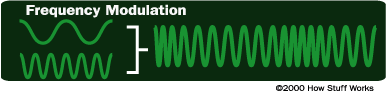 Frequency Modulation - FM radio stations and hundreds of other wireless technologies (including the sound portion of a TV signal, cordless phones, cell phones, etc.) use frequency modulation. The advantage to FM is that it is largely immune to static. In FM, the transmitter's sine wave frequency changes very slightly based on the information signal.