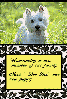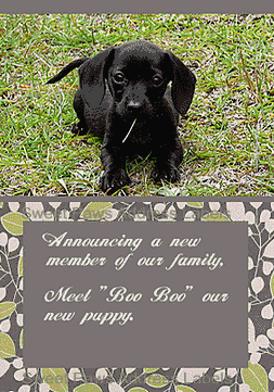 Put your dog photo on greeting card. Send dog photo annoucements cards for your new puppy. Get your dog, cat and horse photo greeting cards.