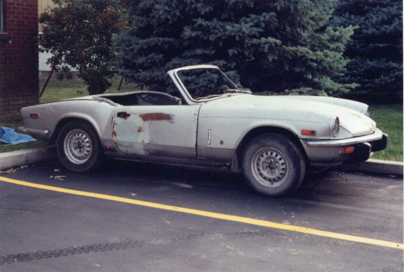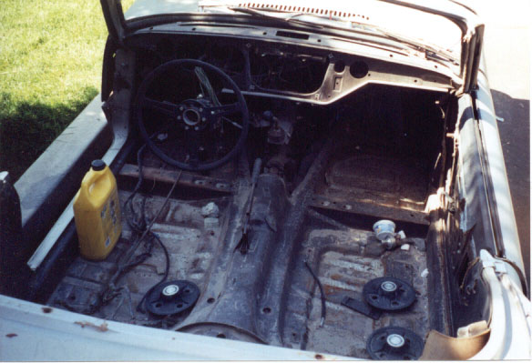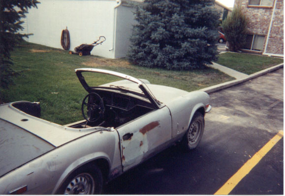 You never think to take pictures until after all of the good stuff happens. Bringing the little car home was an adveture in itself. The pictures below show the car sitting in the parking lot of our apartment complex. I guess there isn't much to see but at least it gives a good idea of where we started.