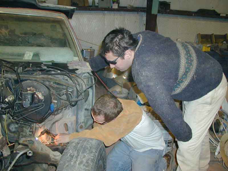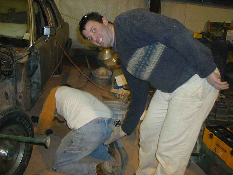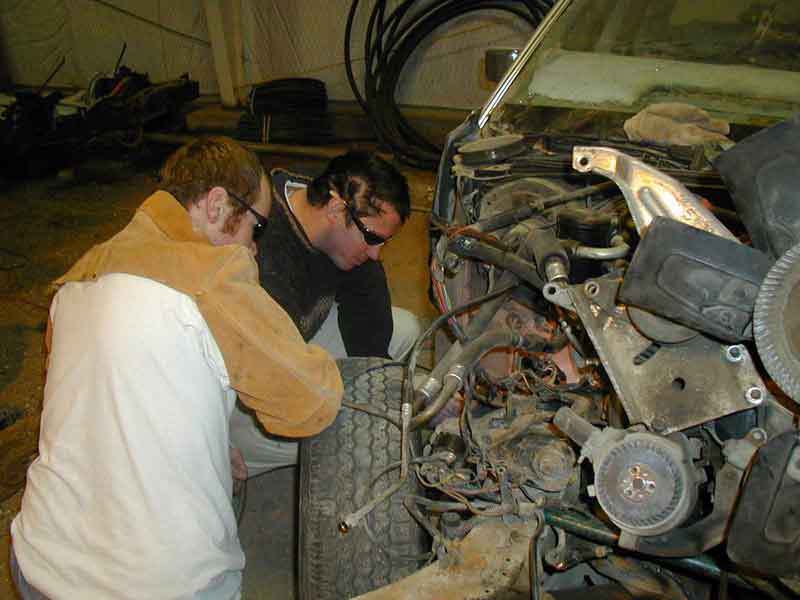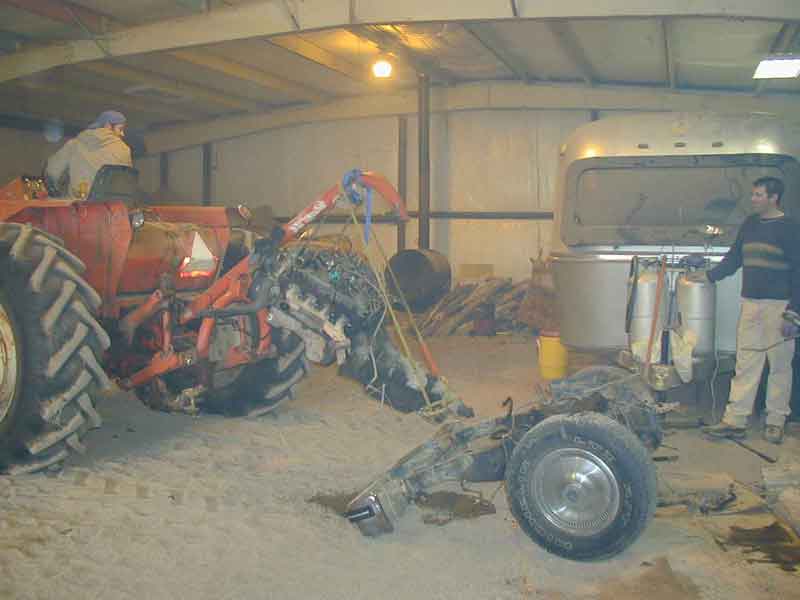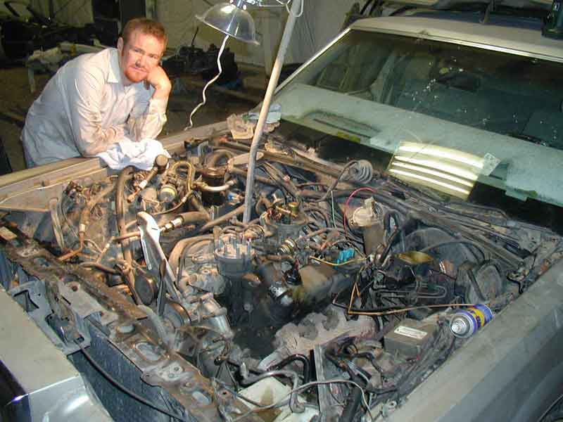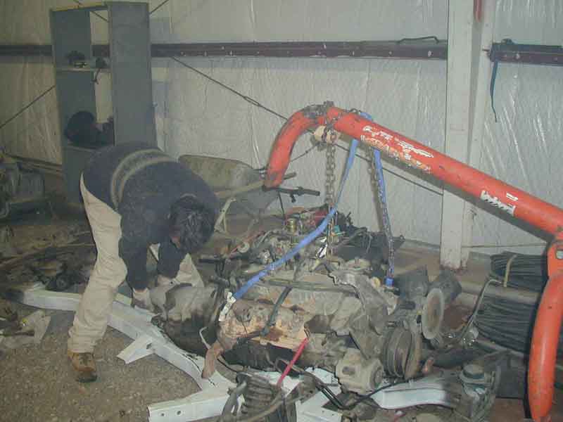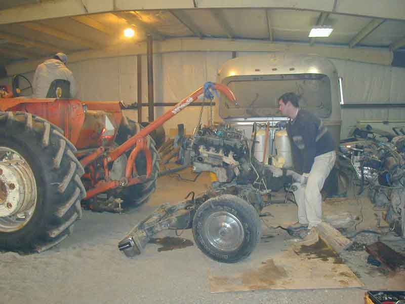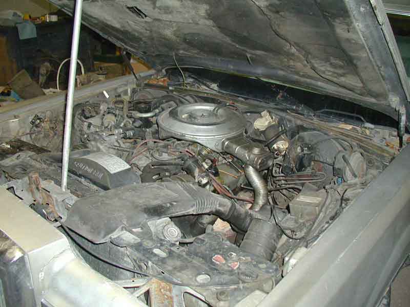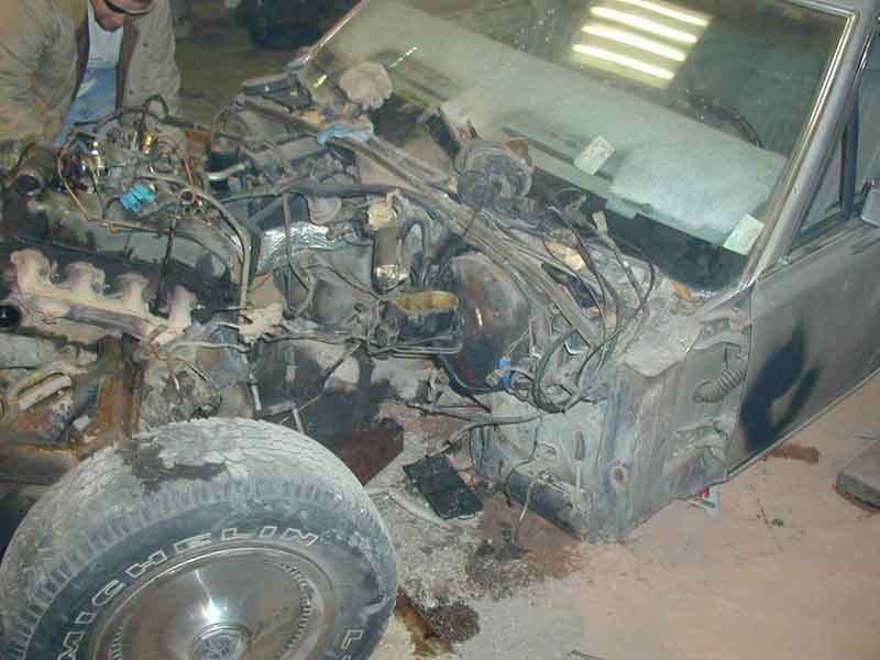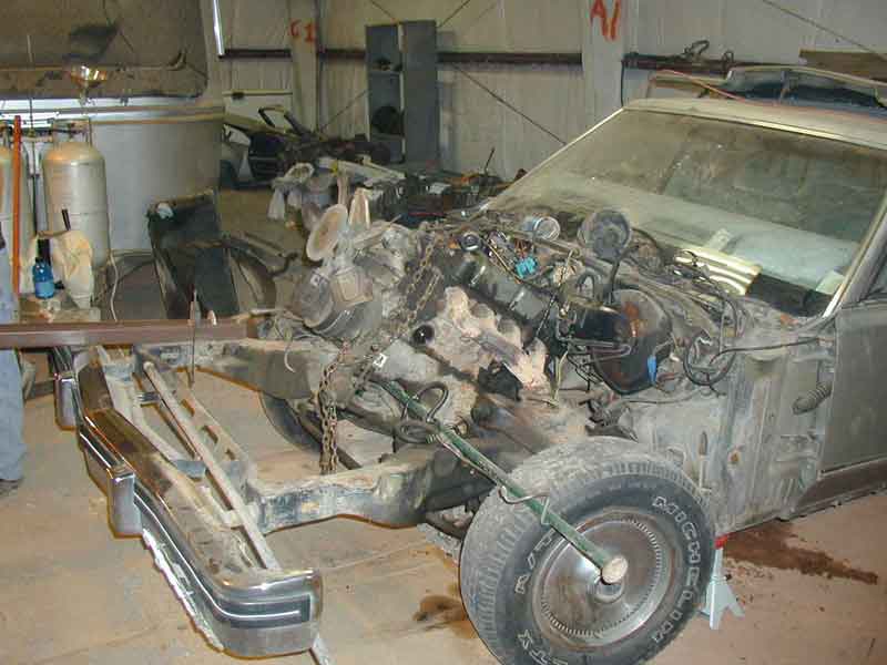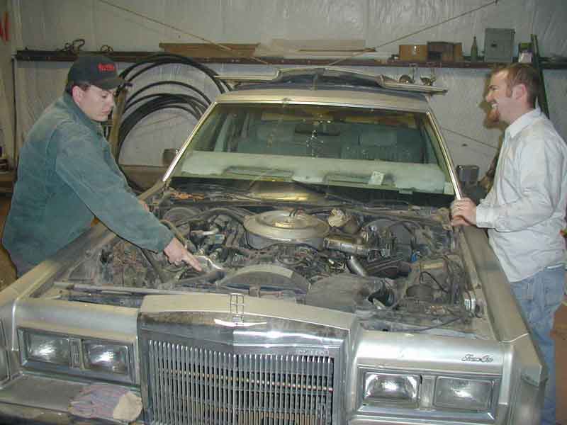 Phase 2! I Looked in every paper, in every junk yard, and even online for a Chevy 283 and a transmission to go with it. I never found anything that would fit into our meager buget. Then one day my buddy Clay, the guy that has made most of the car work possible, found the almost perfect deal. It wasn't a chevy and it wasn't a 283 smallblock but it fit the money price. The pictures of the BIG silver car you see below are of a 1982 Ford Lincoln Town Car which has or should I say "HAD!" a 351 Windsor engine. The Town Car ran before we took her apart. In fact, the Town Car cruised the 3 hour trip to her final resting place in amazing comfort and class. Now now, don't feel sad for our Lincoln Town Car, her 351 Windsor engine will soon Purrrrr agian....I hope!