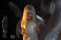 She has a name, I know she does. I could find out, but that would involve extensive research, or using my money to rent feardotcom. frankly I'm not in the mood for either, so we're going to call her Sue. Sue bounces this ball of hers, right? And then the ball becomes your greatest fear, be it making you swerve and get into a car crash, changing into cock roaches, etc etc.