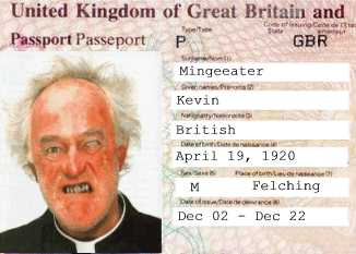 Please also find enclosed, as you requested, a scan of my Passport, which I had done today next town over. Since I am showing my trust in you Ken John, I would find it most comforting if the favour could possibly returned. I see you as a member of the family now, and would like to welcome you as a Mingeeater. To show your gratitude to this humble gesture could you have a photo taken of yourself holding up a sign saying "I AM A MINGEEATER" to show your pledge to my family name.