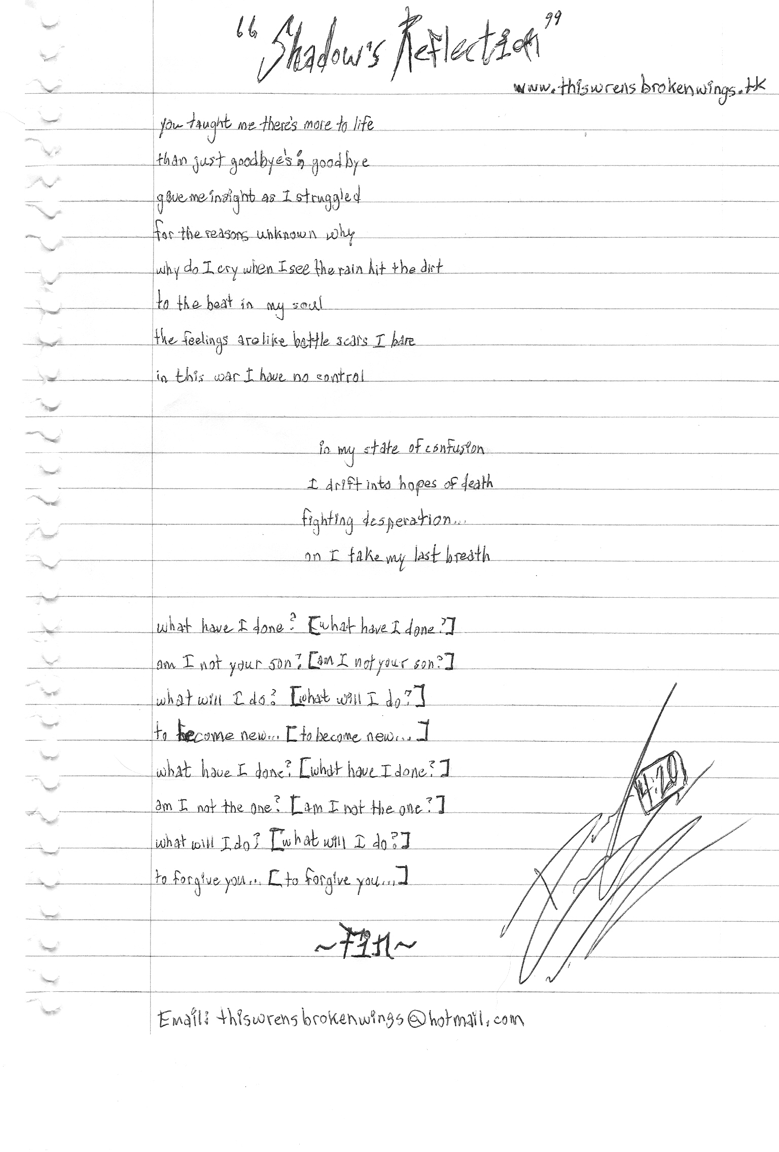 all lyrics written by Dan Corliss (2003-04). the rest of my handwritten lyrics sheets will be photocopied and posted soon as possible. enjoy.