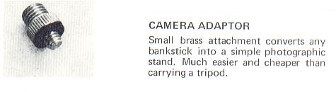 Neat gadget from Gardner that allows you to fit a camera to your rod pod or banksticks, much easier than carrying a seperate tripod. (screws into camera base)