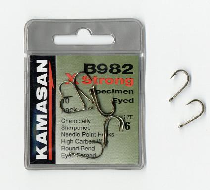 Features short curved shank, curved down eye, slight offset, micro barb, super sharp and strong. These hooks are perfect for hair rigging and give great anti eject properties. The B988 has become a firm favorite with American Carp anglers in the Know.
