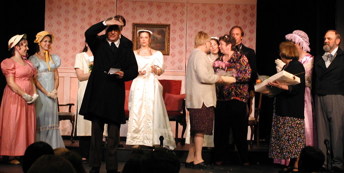 Some of the cast with Joyce Back and Marilyn Lowney, who wrote the script.