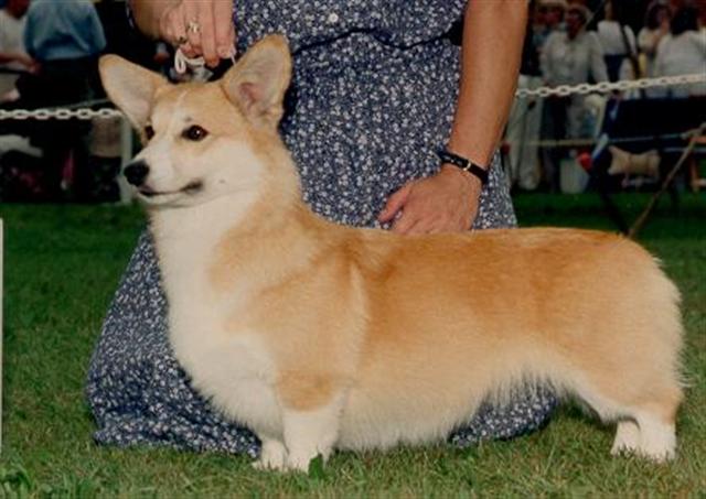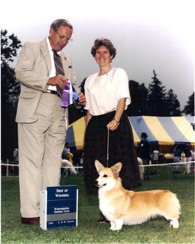 Here's Kelsey! No longer out showing in the conformation ring or having anymore litters, she is my first home champion and now lives here solely as a companion and is a real love bug. Kelsey has produced two litters. One out of Harley (Tallyrand Zip Code) and the other by Ike (Ch. XIII Maples Stellar Idea). From the first litter I kept one puppy named Hannah Banana and Indy, whom can be seen elsewhere on the home page. From the second litter I kept a male named Grant. He too can be seen somewhere on the webpage.