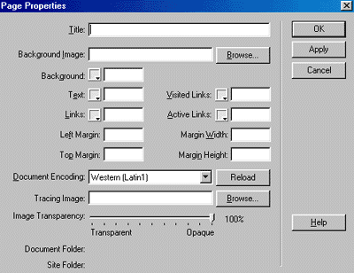 Properties). The Page Properties dialog box lets you specify the default