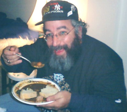 This is not Tyrell Davis’ mom shilling another can of Campbell’s Soup! It is none other than Brother George enjoying some of Allstate Jim’s world famous Yankee Stew. Each team The Yankees defeated was represented in this fine culinary treat. There were green peas and yellow corn to represent The Oakland A’s, some blue-green stuff (Allstate would not divulge what it was) to represent The Seattle Mariners, orange carrots to represent The Mets, and so on. In this photo you see Brother George ready to devour another piece of The New York Mets. Mmmmm Mmmmm Good! |