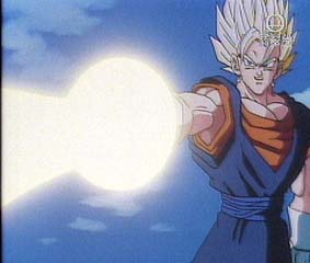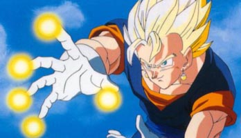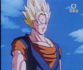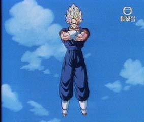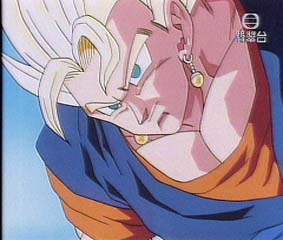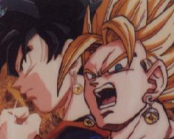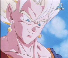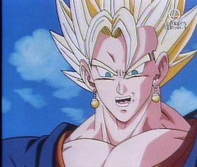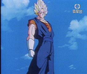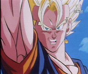 Vegetto With Goku And Vegeta Behind With Buu In The Background