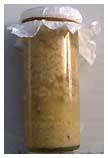 I smushed the soggy bread, added 1/2 kilogram (a little bit over half a pound) of dark brown sugar and another liter of water and poured it into a couple glass jars and put airlocks on them.