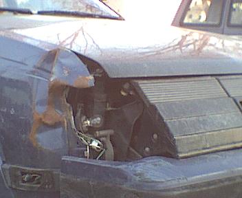 Damage done to the car was actually pretty minor, a dent in the fender and a broken corner/blinker light. Lemme find an old pic of it...