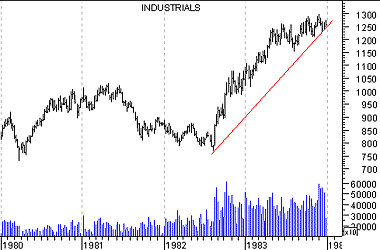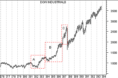 The following chart of the Dow Industrials illustrates these three phases during the years leading up to the October 1987 crash.
