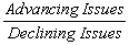 The Advance/Decline Ratio ("A/D Ratio") shows the ratio of advancing issues to declining issues. It is calculated by dividing the number of advancing issues by the number of declining issues.