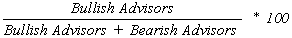 The Bull/Bear Ratio is calculated by dividing the number of bullish advisors by the number of bullish plus bearish advisors. The number of neutral advisors is ignored.