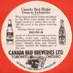CANADA BUD BREWERIES - TORONTO 1928 - 1943 acquired by OKEEFE / DOW 1943-1966