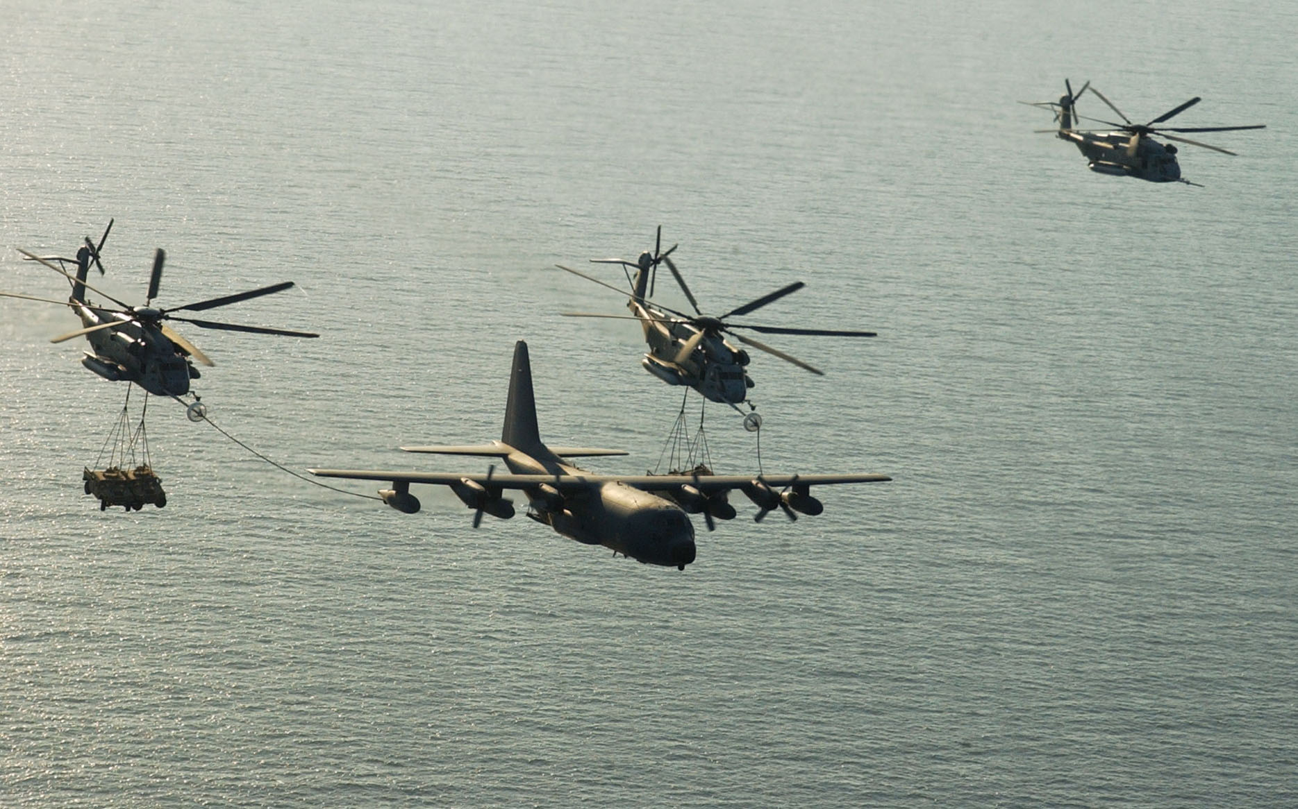 2 CH-53Es with 2 Humvees each sling load