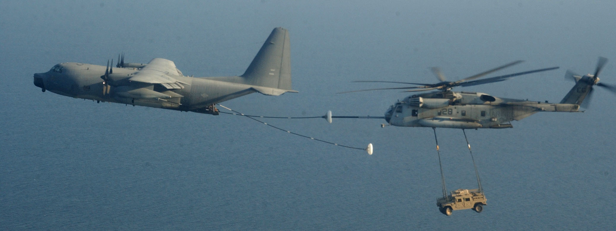 1 CH-53E with 2 Humvees sling load