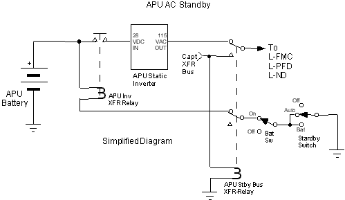 6. 115V AC APU standby bus, powered from an inverter supplied from the APU battery.