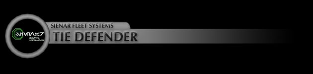 The TIE Defender is an extremely recent design. The project was supervised by top Imperial Navy commanders. The Defender has only been deployed to a small number of elite TIE wings. The ship radically departs from conventional TIE designs. It has three sets of solar collection panels mounted at equilateral points around the fighters cockpit. Thie project was a logical advance for Imperial fighter design. The TIE Defender is more than five times the cost of a TIE/Ln. It is nearly 40% faster. Manueverability has also been improved. It,s weapon systems include four laser cannons, two ion cannons, and two missle launchers which can be equipped with concussion missiles and proton torpedoes. It also has shields and hyperdrive.