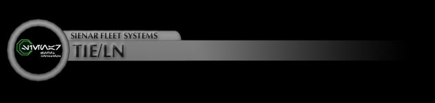 The TIE/Ln is the standard design for the TIE Fighter. It has flat hexagonal solar panels and the standard TIE ball cockpit. They are not equipped with hyperdrive so they must rely on a home base or ship. This saves weight and increases speed and manueverability. TIEs have no shields, no secondary weapons, and no life support systems. This creates room for large power generators, engines, and weapons inside the compact hull. A TIEs weapons are a pair of forward-mounted, fire-linked laser cannons.