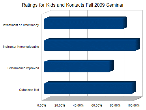 At the end of every seminar, opticians are asked to rate performance. Here's what opticians said about the various presentations at the Fall 2009 program by OpticalCEUs.