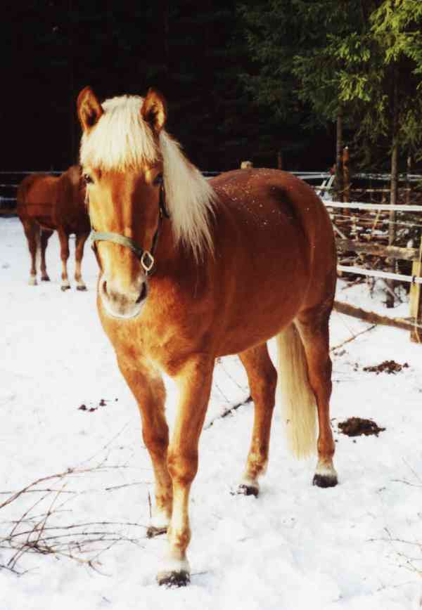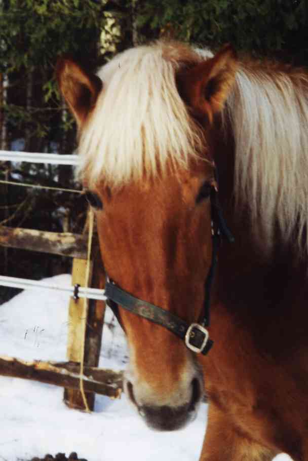 Se on hoidettaessa oikein mukava, paitsi satula laitto ja ja varsinkin satulavyön kiristys eivät miellytä tätä neitiä ollenkaan! Silloin poletaan jalkaa, luimitaan, paukutellaan hampaita ja pyöritään. Muissa hoitotoimenpiteissä Linda käyttäytyy suht asiallisesti. :)