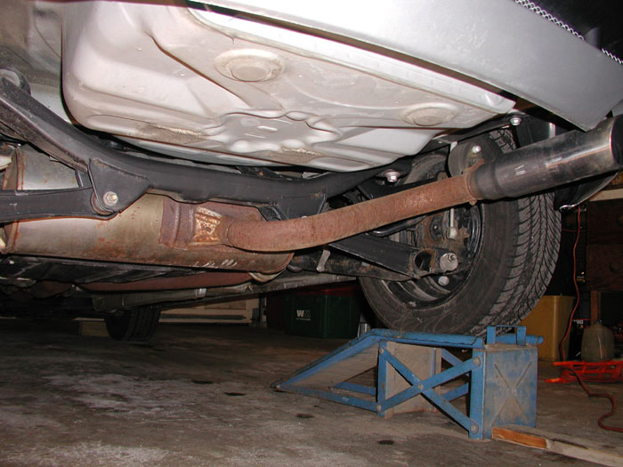 So once those bolts were off and i was able to get the muffler off of the hangers, it looked like this.
