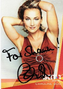 The only real story I have for this autograph is that a friend had gotten an autographed postcard from her and I thought she looked great and wanted one too.Used the email he used and 2 months later I recieved this autographed postcard.She is with a German Gameshow called Blitz.