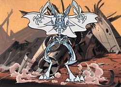This odd-looking droid holds a barely-humanoid appearance. Most of it is incredibly thin, in order to keep its weight down. Though its arms are mostly human-designed, its legs possess some extra joints. It often garbs its form in a tattered cape, which has been bleached completely white. This garment almost matches its body, which is so shiny a metal that it almost looks to be painted white, rather than just bare metal. This cloak has been altered, however, and allows a +10 bonus to Hide checks. Adding this to Grievous’s ability to function on various surfaces makes for a truly terrifying ability for surprise attacks. Grievous 2.0 stores a multitude of lightsabers inside internal compartments, and often uses no other weapons. In combat, this droid is a true terror. Not only is it expertly trained in the use of lightsabers, but in multiple lightsabers, and, though it appears to only have the normal quantity of limbs, in reality, this Grievous shares, with its predecessor, the ability to split its arms, thus giving it four of them at a time to use. Iif it is in need of ranged combat, Grievous 2.0 is not unprepared; it has a special heavy blaster pistol, a sonic pistol, an ion blaster and a flamethrower integrated into its arms. Also, to guard it from other foes with guns, it has a deflector shield. General Grievous, the original, was also built to lead droid armies, and Grievous 2.0 has a controller unit installed in him. Due to the lack of sizable droid armies, this unit has been modified, allowing Grievous 2.0 to seize control of independent droids, such as bodyguard units Jedi might employ. General Grievous 2.0 is a walking nightmare, considered lethal at any range.