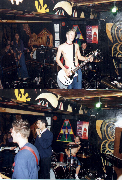 JACARANDA GIG - just some photos of us pissin about on stage. everyone has a go at singin in this here band. we were joined by ian for his kickass 'Disco Paedo'. this went down well we all thought. bit of a shit gig though. sound problems and all. but who cares? get pissed destroy y'all!!