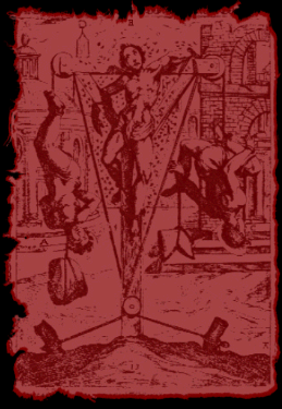Person is usually tied over a wooden beam by a rope, dangling in the air in various positions. Anouther horrible way to die...