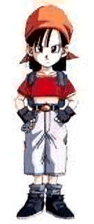 History of the Person:Pan is a quarter Saiyen from her dad and three quarters Saiyen from her mom. Pan is born after the disappearance of Boo. Her Grand-oarents are Goku and Mister Satan which makes her have a very prestigious family. Pan really likes to train with grandfather(don't worry NOT Satan)actually surprise, surprise, Goku. Pan would love it if she could spend more time with Goku. Satan treats his grand-daughter like she was a cute cat or rabbit, even though she is about 10000 times stronger than him. Satan also spoils Pan because he is so, so rich.
