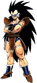 Characteristics:Raditz is the first son of, Bardock. Raditz is raised by the Saiyen traditions, with no heart and no compassion for anyone, not even for his lost brother htat he would kill without hestitation. He is a warrior of low class, he doesn't have experience in battles when he fights people stronger than him. His fighting power is low (1,200) compared with the two other Saiyens. (Nappa 4,000 and Vegeta 18,000) Raditz never trained his tail, so that is why when Goku grabbed his tail he couldn't move. Nappa and Vegeta made fun of Raditz because he didn't train his tail, the weak point of the Saiyens.