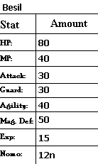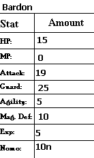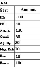 Homestun You, as the main character, will start as a sleeping guy on a bed. Walk out of bed to your left. Now you should see your dad stagering over to you (ready to trip over his cloak). Listen to what he says. Now, when you exit the house, walk over the board to reach mommie. She will give you a key to a chest. Go to your house and look for the chest inside. Stand next to the chest. Now, press the ([]) button to enter your menu. Goto items and press X. Press X when home key is highlighted. The chest should open and give u items. Choose your own way to spend your money on weapons and armor. Now, talk to the green-haired girl. That is Clarice. Say "yes" or "no" to her question. But no matter what she will join your party. She doesn't like the word no. Now after you buy weapons and armor for them, head out. Feel free to come back here when you need to, but don't count on this luxery to last long..... Forest Folly This is your very first dungeon. You are supposed to explore it and find the demon haunting it. This should be easy, right? All I can say is explore the dungeon. And to the way way south there is an egg and two chests. A monster battle is in the egg! In the two chests there is a dagger and filn berry. When you see a dragon character and book, save at the book. Then go to Draco. Monsters In The Area