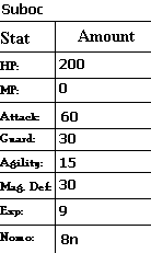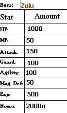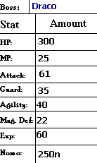 Special Monster BOSS: Here is the first boss. This boss is no pushover. Be at least LV. 8 before challenging this dragon. His fire spell is his deadliest attack. In fact, at LV. 8 it is greatly annoying. Good luck. What you do is: Craquge Monters in the Area