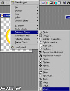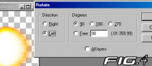 Now its finally time I show you how I create my famous and lovable fireballs. Could you believe this little thing can winde up being this big thing . Now I know all of you are saying ooooooo. Its very simple. I stumbled onto this little creation, by fiddling with the prog alot. This lesson is hands free you dont have to paint or touch anything. Now its time to tell you how I did this. First thing you'll need to do is resize that little plain energy ball at the top. Resize the width to 176, and click the box to maintain aspect of ratio and press ok (see fig 1). The next thing to do is export your now big fireball to psp7. Now all you have to do is click on effects tab In Paint Shop Pro 7, than click into Geometric Effecfts then into Wind...(see fig 2). Now put the strengh exactly on 10. It doesn't matter which diredtion you put it on, cause you will have to do both left and right ( see fig 3). Now its time to Rotate the Energy Ball so we can apply the wind effect to the other side of Ball (see fig 4). After applying the last 2 wind effects to your energy ball it should look like this (see fig 5). After that your done!!!!!!!!