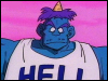 Goz is the fitness director and the fruit guard in Hell(H.F.I.L.). He carries around a huge mace that he uses to knock people over the head with, when they try to steal the fruit. Goz and Mez(his partner) have been guarding the fruit for many centuries and only once, has a fruit slipped through them. They are the strongest Ogres in Hell.