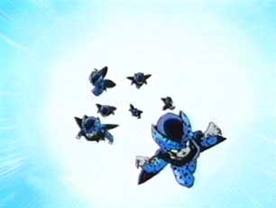 FWOOSH! The Cell Jr.s returned to the scene. Cell was in a full body cast, and the Z guys were about to blast him into smitherines.